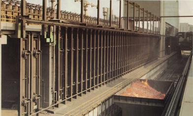 (iv) El gas sale del horno por el tubo montante y se lleva a la planta de subproductos, retornando una parte del mismo a los hornos para su calentamiento.